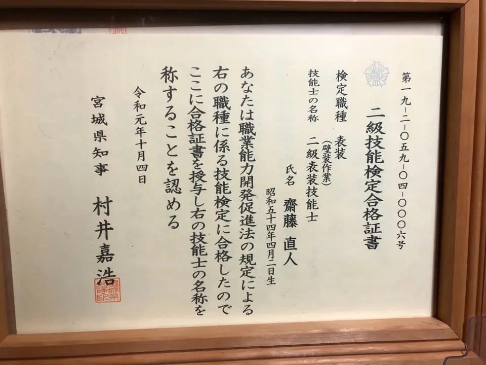 | 許可 | 宮城県知事許可(般-30)第21567号 内装仕上工事業 |