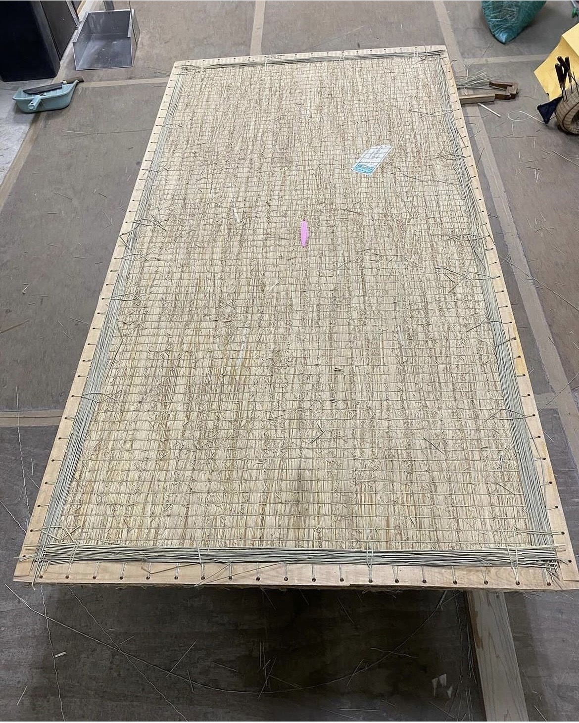 畳表/大分県産・本琉球畳表へりなし半畳 × 襖紙/イ草配合紙「かみいぐさ」喰い裂き・市松細工張り