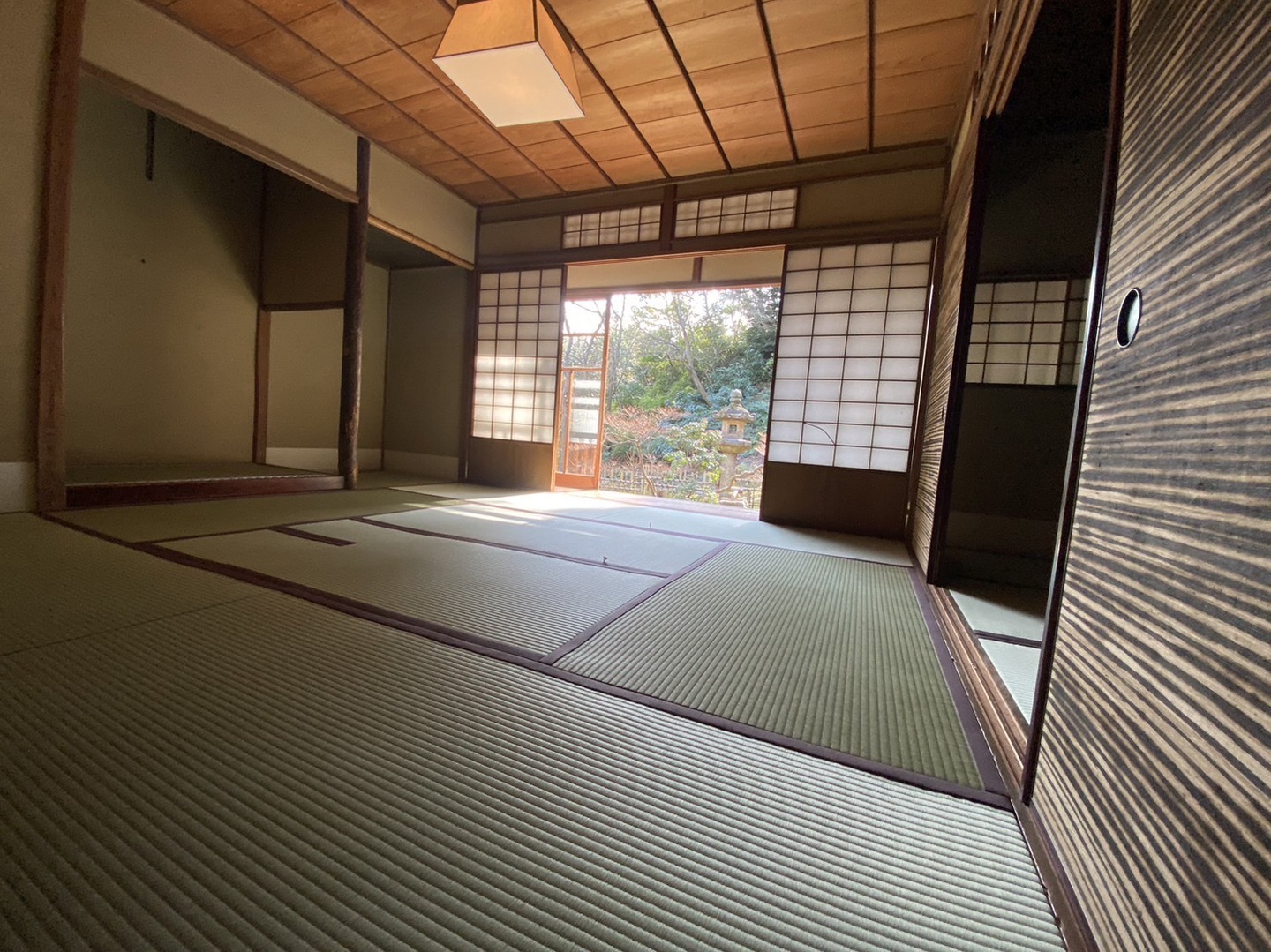横浜市・三溪園/有形文化財 白雲邸 四方板入れへりなし畳手縫い表替え